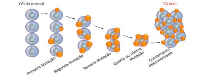 Infográfico que apresenta a multiplicação das células - câncer de mama
