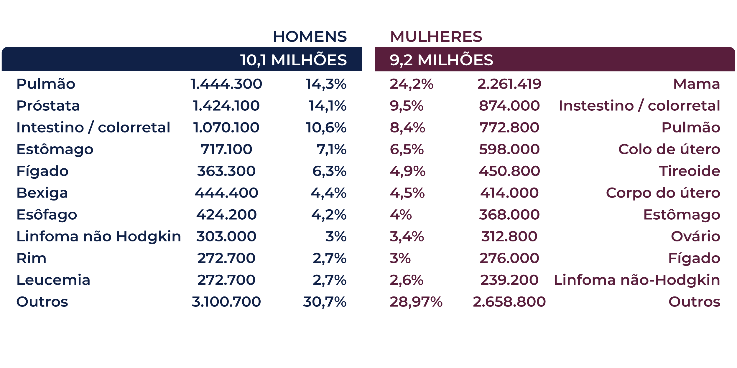 Infográfico apresenta incidência do câncer em homens e mulheres